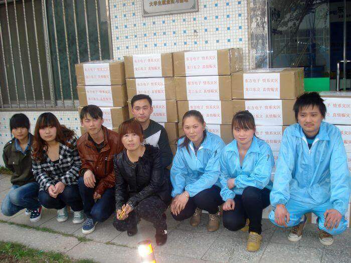 4月20日早8点,四川雅安发生7级地震,消息传来后,黑龙江省中旅国际旅行社有限公司道外分公司第一时间做出反应,公司旗下以生产线缆、灯具和汽车售后服务产品为主营的东立公司立即组织员工加班加点,赶制灾区可能急需的照明设备LED头灯和手电筒,用最快的速度发往灾区,无偿支援灾区救援工作。